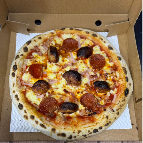 Our meat feast, but with a festive spin! Brie, Smokey Bacon, Ham, Pepperoni and Pigs in Blankets.